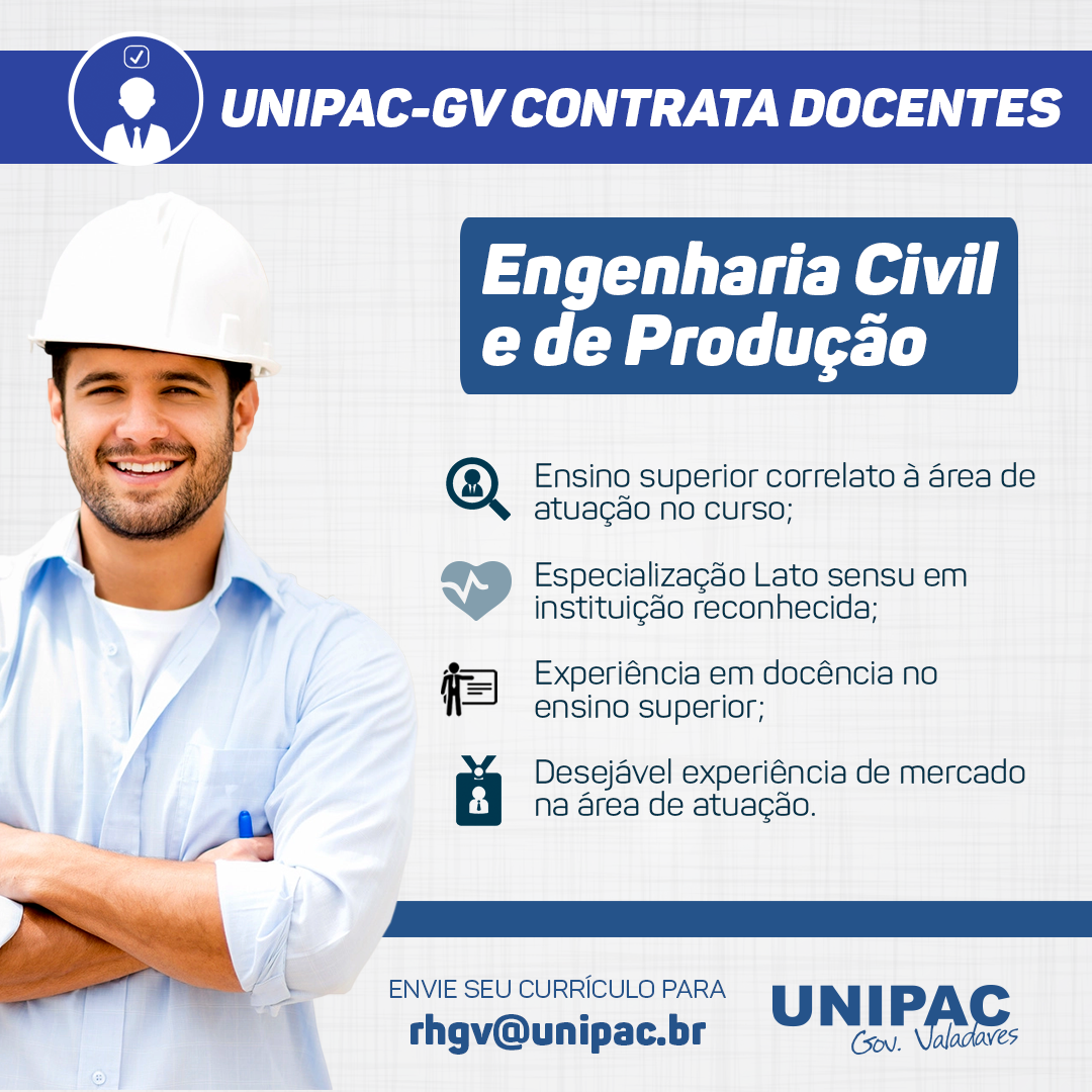 Venha fazer parte de nossa equipe! A Unipac-Gv trabalha em busca de resultados, acredita no poder do ensino como grande diferencial para o mercado de trabalho e reconhece a importância…