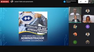“Registro aqui meu agradecimento à Unipac-GV na pessoa do Prof. Me. José Roberto, coordenador do curso de Administração e Ciências Contábeis, pelo evento ocorrido dia 09/09 em comemoração ao dia do Administrador. A participação do Administrador Prof. Dr. Joubert Fidelis foi brilhante como sempre. Foi uma “live leve”, com conteúdo relevante para enriquecer nosso conhecimento.”